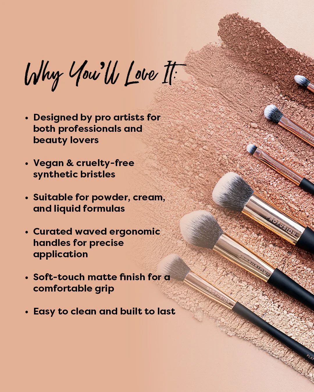• Vegan & cruelty-free synthetic bristles